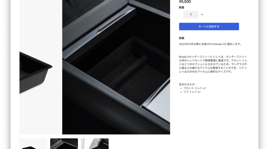 Model 3 – Highland(2024年モデル)を買ったらぜひ併せて購入したいのがこの「センターコンソールトレイ」。センターコンソールの2ヶ所のストレージボックスにそれぞれ1つずつセットできる。 モデ … 続きを読む モデル3 (ハイランド)を買ったら必須なアイテム